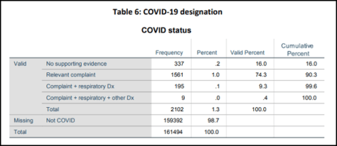 Van de 2.102 opnames, naar verluidt “veroorzaakt door het nieuwe coronavirus van 2019” , vertoonden slechts 204 (9,7%) enige fundamentele basis voor een diagnose van de ziekte van Covid-19. De rest was ofwel asymptomatisch of testte positief op SC2, zonder enig bewijs dat het testresultaat overeenkwam met de ziekte van Covid-19 (Dee’s vals positief ).