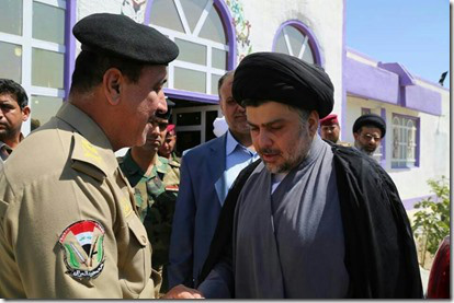 De sjiitische geestelijke Moktadda al Sadr (rechts) is op dit ogenblik een centraal figuur in Irak. Zijn partij en het blok van andere partijtjes rond hem is essentieel voor Maliki om in het parlement een stevige meerderheid te vormen. Militair beschikt hij ook over een degelijk uitgebouwde militie die zelfs tijdens de Amerikaanse bezetting niet bezweek voor het Amerikaanse leger. Ze stond op inactief maar is nu terug onder de wapens geroepen.
