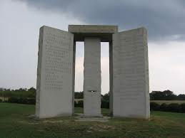 Georgia GuidestonesAl in 1980 werd er de Amerikaanse staat Georgia een geheimzinnig monument, de ‘Georgia Guidestones’, opgericht. Niemand weet precies wie er achter dit ‘Amerikaanse Stonehenge’ zit, maar in het monument zitten in 8 verschillende talen de 10 geboden van de Nieuwe Wereld Orde gebeiteld.