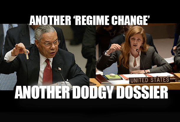Besef mijnheer Macron, deze chemische wapen farce, de westerse propaganda mantra, is nog maar flinterdun. Het steelt zelfs de kroon van de leugens van de staat, uitgesproken door Nazi Bilderberg trekpop Colin Powell, zwaaiend met zijn dossier bij zijn Nazi vrienden in de Verenigde Nazi’s Veiligheidsraad. Met elke dag die voorbijgaat verliest het chemische wapen leugen haar betoverende macht.