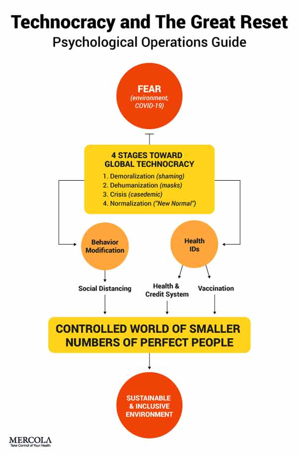 Dit is geen complottheorie. Het plan is in de openbaarheid. Zoals opgemerkt door Time magazine, (7) “De COVID-19-pandemie heeft een unieke kans geboden om na te denken over het soort toekomst dat we (de psychopaten) willen.”